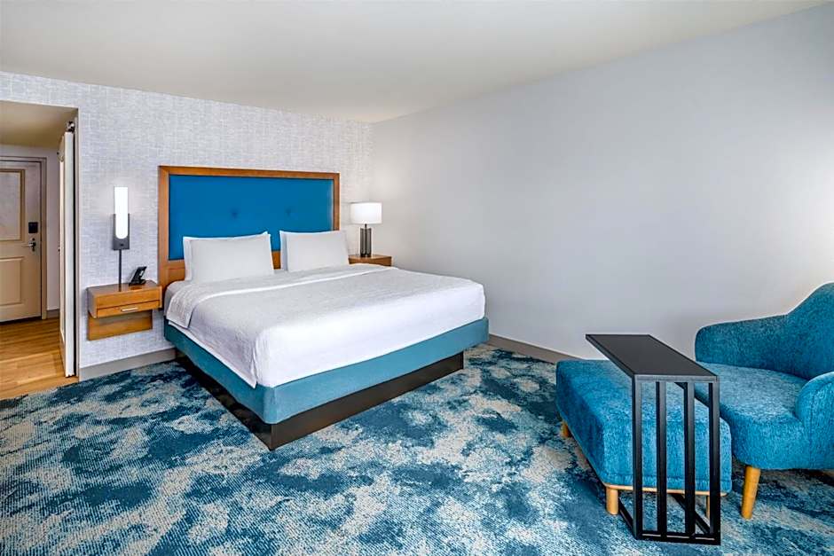This guestroom includes a 42-inch flat-screen TV, large work desk and small refrigerator. Ironing facilities, a coffeemaker and a lounge chair are provided. An assortment of nonalcoholic drinks and snacks are replenished daily.
